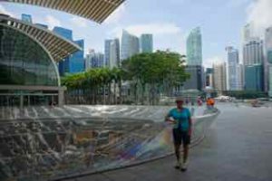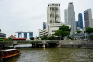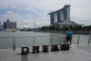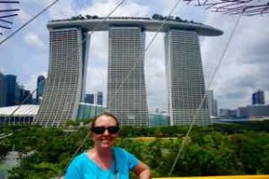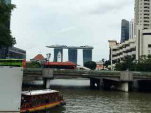 The walk along the river also has great views of Singapore’s signature landmark, the Marina Sands. The Sands is the building with three towers and a huge platform across the top of the towers. I think it looks similar to a cruise ship. This is a building that we will visit later that has the world famous infinity pool high atop the buildings.