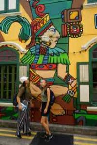 Our walk continues as it winds through Chinatown to the Sri Mariamman Temple, Singapore’s oldest Hindu Temple. This temple was originally built in 1827 with many modifications and additions since. It has some impressive multi-tiered sculptures outside, as well as, frescoes on the ceiling inside.