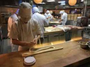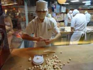 At the same complex we head to lunch at Din Tai Fung for dim sum. Apparently this place has a great reputation, ranked as one of the best restaurants in the world by the New York Times…and the line confirms it. The wait is posted at a 25 minutes. What’s cool is they give us a clipboard with the dim sum menu to be completed while we wait. The kitchens are enclosed in glass so we can watch the various dim sum being prepared. Shortly after we hand in our clipboard our selections begin arriving. I must say the hot and sour soup is the best I recall ever having. And I have had quite a bit growing up as it was one of my mother’s favorites.