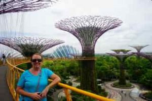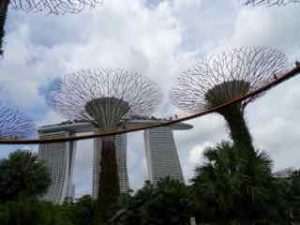 We head toward Marina Bay Sands complex to get some pics of the unique buildings. We pass through the Sands and then venture to the Gardens. The Gardens on the Bay are impressive. They are home to numerous “Supertrees”. These are large man-made trees that harness solar energy which is used for various purposes including a nightly light show. The Supertrees are also used to collect rainwater for use in irrigation and fountain displays. They also serve as air intake and exhaust functions as part of the conservatories’ cooling systems.