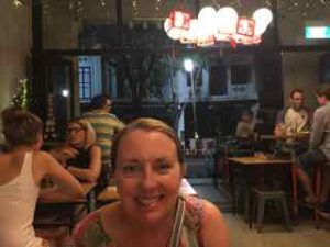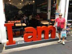We stroll down through Chinatown to a restaurant on the other edge of Chinatown, My Awesome Cafe. I was thinking it was a Chinese restaurant, but, not. Actually it is a cool hipster cafe with some healthier type dishes. I opted for the avocado BLT and Tracey had a beautiful salad with egg, avocado, almonds, walnuts, rocket, marinated red peppers and cranberry. I chase mine with a cold Stella and Tracey has a Little Creatures from Australia. (Ok, so we fell of the vegan, no alcohol diet of two weeks at our yoga-meditation retreat in Cambodia…there is always tomorrow). We lose an hour so we are up a bit late doing some planning for our visit here in Singapore.