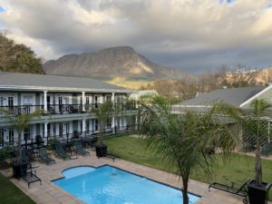 We headed off mid-morning after a good breakfast at the Hussar Grill nest to the Protea Hotel. A three hour scenic drive through the mountains land us in Swellendam for a great lunch at a little spot…then check in at the Garden Route Game Lodge.