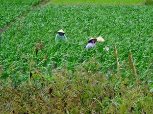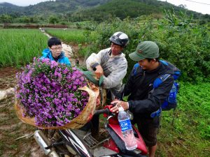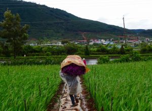 We start our trek in Chicken Village and walk through the many vegetable and flower farms. The colors are beautiful, even in the rain. The Dalat area provides vegetables to many other areas of Vietnam and exports flowers around the world.