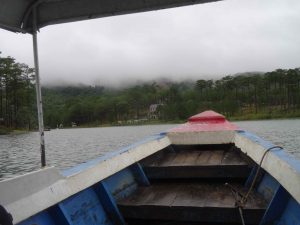 After our late, late lunch we pick up a boat to take us across the lake for our drive back to Dalat City and our dry hotel!