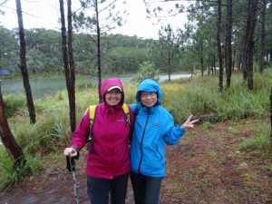 We wonder if our trek through the mountains will be cancelled. No such luck, as our guide shows up at 8:35 am. Vien is energetic, young I suppose! Vien studied English at Dalat University. His seven siblings work in agriculture in the area. We are also joined by Carol from Singapore. Carol is a nurse, 64, who has traveled many places around the world. Antarctica, Machu Picchu, Nepal, the list goes on! We add a few places to our list based on our conversation.