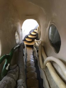 I was expecting just a bit of craziness, but this house goes on and on. Stairs and walkways wind throughout, and even over the rooftops, with sections connecting various buildings and rooms. It sort of feels like you are walking through blood vessels or intestines.