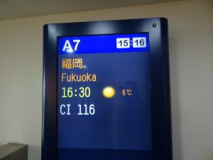 We arrive in Fukuoka, Japan around 7:30 pm from Hong Kong via a transfer from Taipei, Taiwan. I was a little skeptical about flying on China Airlines, a Delta partner. But they provided us with on-time flights, good service and food at the Taipei sky lounge.