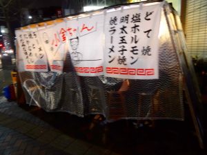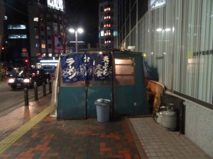 We don’t eat too much here and want to try the Yatai Raman restaurants here, which are actually small food “stalls”. We walk by a couple of them off Nagahama Street, none are crowded. These are more popular late night after drinking. We opt out of these and head to Shin Shin Hatake Ramen shop that has always had a line when we have walked passed it. Tonight is no exception but we only wait about ten minutes.