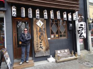 After lunch we go to a nearby curry udon shop. What a great combo. This is a tiny shop with about 10 stools around a bar. The noodles are served hot with some tempura chips. After eating about half of the noodles a hot broth is poured over the noodles to make more of a soup. Outstanding and perfect spice on a cold winter day. Our server asks us how we selected this place for lunch. I am guessing they don’t get too many westerners, let alone, Americans, that stop in to eat!