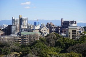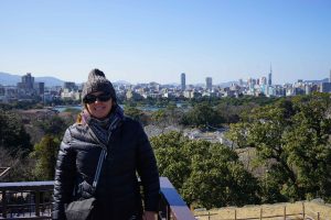 It is a cold morning on Monday, but clear blue skies. After a couple of eggs for a late breakfast, we head out to see the Fukuoka Castle Ruins. The ruins of the castle are located in Maizuru Park.