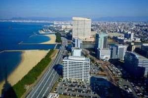 The Tower is a 234-metre tall tower located in the Momochihama area built in 1989. It is the tallest seaside tower in Japan and offers great views of Fukuoka, Hakata Bay and the nearby sea, the city and surrounding mountains.