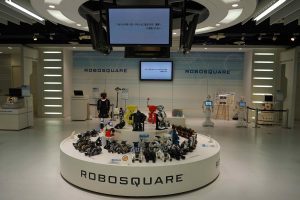 We leave the tower and these phenomenal views and head over to Robosquare. Robosquare was opened in 2002 to increase familiarity with robots, a learning facility and to help foster production of robots. Japan has an aging and shrinking population, thus a labor shortage. Prime Minister Abe sees this as an incentive to boost productivity through innovations like robots, wireless sensors and artificial intelligence.