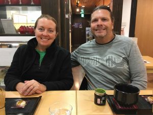 We have the sushi special for the night plus unagi, uni, whale tongue, Hokkaido scallop, miso soup with fish…all phenomenal. We enjoy a bit of small talk with the chef about the cold weather here and warm weather in Florida. He says we just missed a bit of snow here last week. I enjoy sitting at the sushi bars here, trying to make some conversation and trying new and unique sushi at the chef’s suggestion. Kind of like a candy store for me!