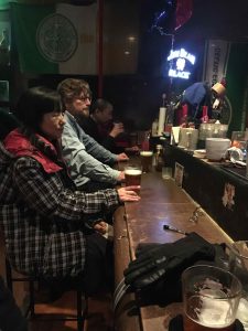 After dinner we head back over to see Mike the owner of the Craic and the Porter Irish bar. A couple more patrons there tonight, including an expat and his Japanese business partner who likes whisky. He and I enjoy several shots of Makers Mark before he turns to toast. It is another late night of good conversation, well, at least some effort at translating conversation.