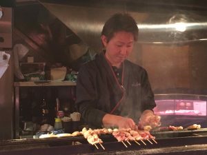We head back to our neighborhood to try a little yakitori at a nearby restaurant. It is just before six so the restaurant only has one other table of patrons. It is terrific to be there and have the attention of the non English speaking server and cook at the yakitori bar to help us with selections.