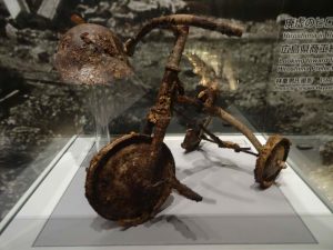 We are able to spend about one hour in the Museum before closing. Many of the stories, impacts, and exhibits are similar to those of the Nagasaki Museum. The museum contains artifacts and photos illustrating the shadows of the victims imprinted on a wall. The incredible intensity of the blast was such that it permanently burned shadows of people and objects into the ground and or walls.