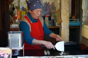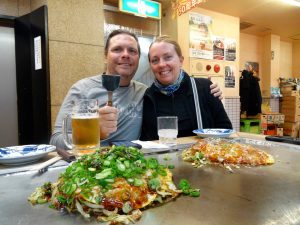 There is not much English spoken but the wonderful chefs make it happen for us. While it looks like a lot of food, it is loaded with cabbage and sprouts. I wouldn’t go as far as healthy but perhaps it’s not too bad for you. The experience is one must enjoy while in Hiroshima!