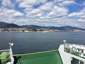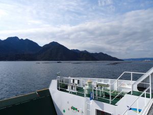 It is about a 30 minute train ride and then a 10 minute ferry ride over to the island. It is very easy to navigate and is all covered by our 21 day JR Rail pass, including the ferry!