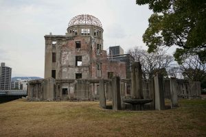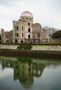 Of course in Hiroshima and Nagasaki both cities were destroyed. In Hiroshima, 80,000 people were killed instantly and tens of thousands more died in days, weeks, months and years to come from burns, injuries, cancers and other illnesses related to radiation. (For our trip today Nagasaki, click HERE.) In Hiroshima almost everything up to about one mile from the hypocenter was completely destroyed, all homes within 1.5 miles. Almost all wooden structures within two miles were destroyed.