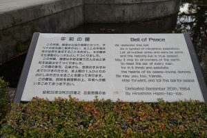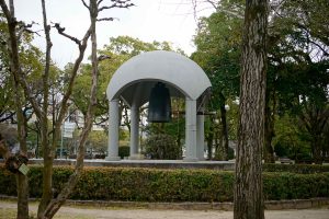 We walk through the grounds and the Peace Park toward the museum. There are several monuments and symbols along the way. We stop and ring one of the three Peace Bells and pause at the Atomic Bomb Memorial Mound.