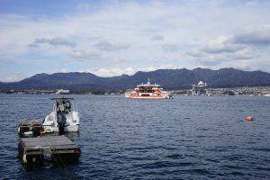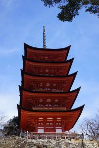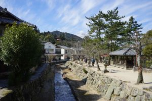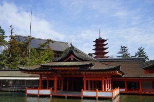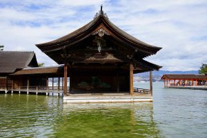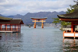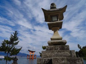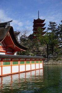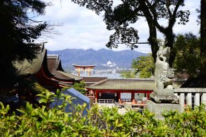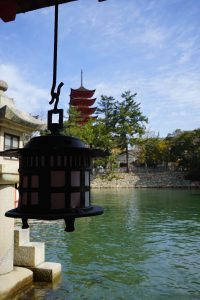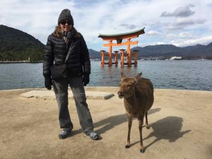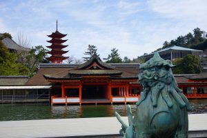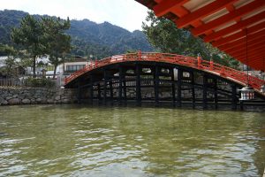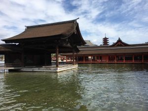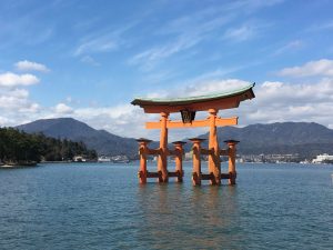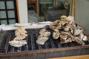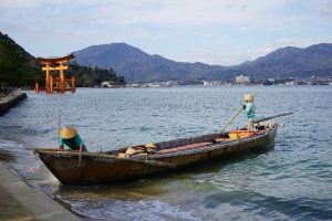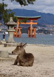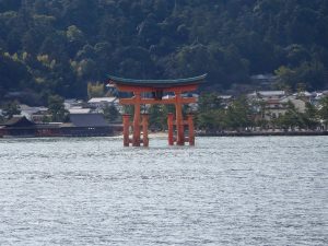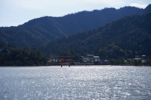 The “floating shrine” is visible on the trip over. Also there are oyster beds in the waters along the way. The seafood, including shellfish for the Hiroshima area are filled with nutrients from the six nearby rivers that flow into Hiroshima Nay, making for excellent food! Hiroshima is the top oyster-producing city in Japan, accounting for over 60% of oyster production. I enjoy “grilled” oysters in the small town surrounding the shrine.