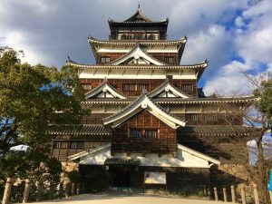 Hiroshima Castle is on the agenda for the afternoon. It is an impressive castle, rebuilt in 1958 after being completely destroyed by the atomic bomb. The museum in the castle effectively describes the history of the Hiroshima area with many artifacts. The grounds and moat around the area remain and there are some great views from the top floor.