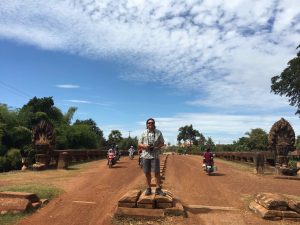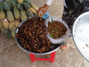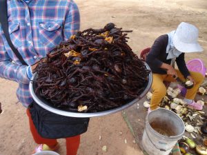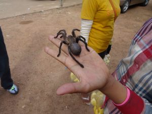 En route, we travel through the town, Skun. This town is infamously known as “spiderville” where a local delicacy can be tasted, roasted tarantula. I did not plan on trying the tasty arthropod, but, when in Rome! I first let the live tarantula crawl on my shirt.