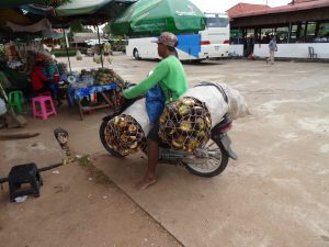 Today starts early with “chanting” beginning around 4:30 am and continuing nonstop for at least an hour, maybe to sunrise. Then a little after 5 am, some singing begins, along with the chanting! The two “vocals” are not harmonizing. We are told later this is all part of a wedding ceremony that lasts a couple of days.The day is mostly driving with a few stops. We are heading to Kompong Thom. It is a small town that is usually a midway stopover point for those traveling from Phnom Penh to Siem Reap.