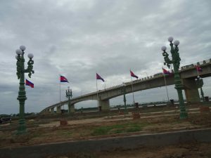 We cross the Sien Kizuna bridge over the Mekong built by the Japanese and opened in 2001. It was the first bridge over the Mekong in Cambodia, connecting east and west.