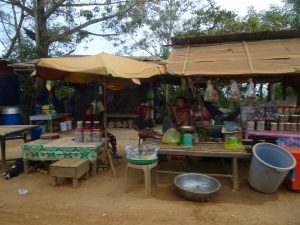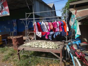 We make a stop at a small shop/home and use the bathroom. A small wooden structure like the outhouses of Appalachia but with a squat toilet and a bucket of water. We walk through the families home/lean to/hanging laundry to get to it. Very gracious of them. Whatever it takes!