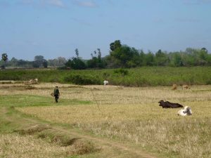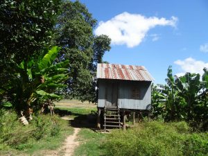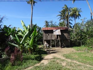 For a couple of hours we travel through the rural countryside and village after village. Many of the houses are built high on stilts, a common Cambodian style. Many or most of them are old and wooden. The roads are rough. Not much wider than one lane and very dusty. Some are dirt roads. Many types of crops are grown here. This is certainly another unique place in the world!