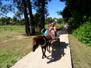 We continue our bike trip seeing more of the Mekong and its “beaches”, children playing, and small horses being ridden or pulling carts along the way. It’s a beautiful sunny day so the colors are spectacular.