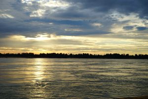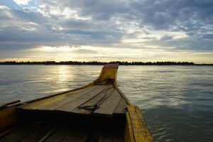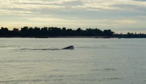 It’s the late afternoon and we arrive in Kratie and the mighty Mekong River. We board a boat and venture out to the middle of the river to see the freshwater Irrawaddy dolphins,, an endangered species, unique to this part of the world. We see several pods of the dolphin as the sunset begins over the Mekong. They look similar to a beluga whale, but are closely related to the killer whale. Such a beautiful amazing scene! it’s about an hour before sunset when we finish and the colors are terrific.
