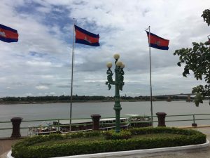 We venture from here to look for a bit of New Year’s Eve cheer. Our driver says he likes whisky, so we stop in a small place on the Mekong called the Red Setting Sun. Jim Beam or Jack Daniels are the “bourbon” choices. Three JD on the rocks and a gin and tonic, nine dollars! I am told by Sophea that this is expensive.