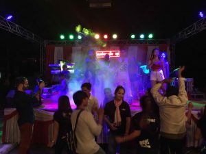 The bar is right across the street from the Mekong River and an outdoor New Year’s celebration with live music, a stage, dancing, food and drinks. Of course, we join in be fun till just after midnight! Happy New Year!