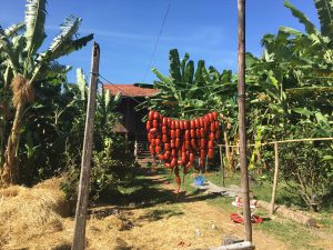 We make a stop at one shop/home that sells some food, drinks and ice. The lady of the house cuts us fresh pomelo and serves us ice coffee, cold tea, and even hot tea.