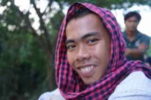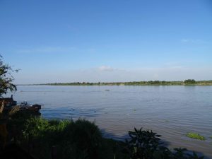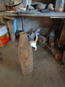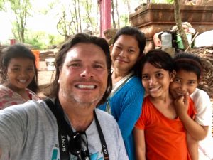 Later, I go upstairs with the father and see the view of the river from the back. The home is a traditional wood home on stilts. I also see and hold a dismantled artillery shell found in Cambodia…as I pick it up it must weigh 50 pounds. There are many shells on Cambodia that have been found and unfortunately maimed many people. We actually saw a crew today working along the roadside still searching for unexploded bombs not far from this area.