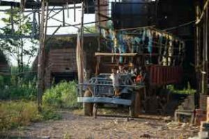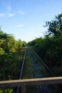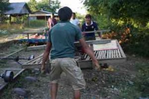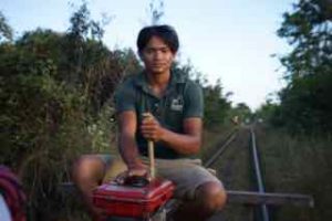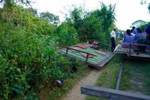 It’s a short ride to where we pick up Battambang’s bamboo train. This is one unique train in the world. The train “cars” are not connected, rather each one is powered by a small “lawn mower engine”.