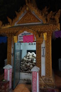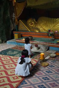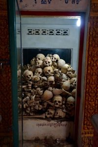 Amongst the skulls and bones, the temple also has a very large reclining Buddha image. As we visit, there are two children praying at the temple. The whole scene is very moving and emotional again thinking about what happened here with the beautiful innocent children at the temple.