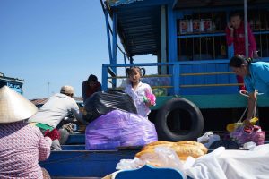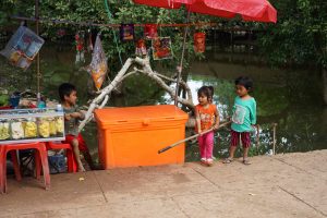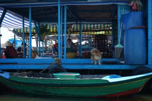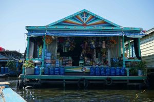 The Kompong Luong village is all on water, on canals and the lake. The village has a post office, small groceries or marts and other businesses all on the water. There is much trash in the area and the water does not seem clean.