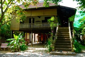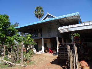 We visit a house built in the 1920s in the Cambodian Pet style. It is owned by a beautiful older lady, Mrs. Bun Roeung, who we have the pleasure of meeting. Her parents owned the house originally. During the Khmer Rouge regime from 1975 to 1979 their house was confiscated and many family members killed by the Khmer Rouge. The house is beautiful, and built on stilts in traditional style. The owner of the house could not bear to live in the house with the memories when she returned. So she lives nearby and runs this as a house stay and museum, giving short tours for donations.