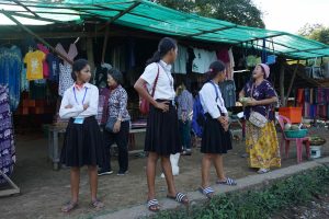 They go to school half days here. Half of the children go in the mornings and half in the afternoon. These girls have school from 1 – 5 pm. Giving money to the children should be discouraged if they are supposed to be in school.