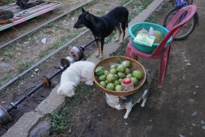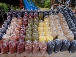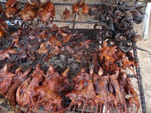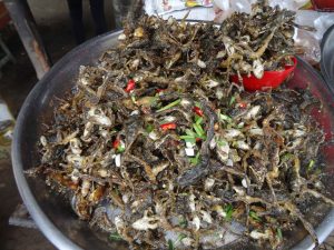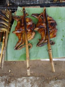 It’s lunch time and we make a stop at a roadside stand where there are a few BBQs happening. Nothing looks appealing to us, not even to our local guide. The BBQs consist of rat, entire frogs, something in the half frog half tadpole stage, quail, cricket and roasted water snake. We decide to move on because we do not know the source of the rat, lol. i.e. you don’t want to eat a city rat, make sure and pick a country rat!