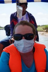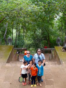 We make one more stop at a village known for silversmithing. The “shop” we stop at is on the ground floor of a home on the Tonle Sap river. The whole family participates in the crafting. We enjoy our visit with the family. Tracey needs to use the restroom, so the young girl leads her, by holding her hand, upstairs and through the house.