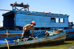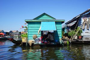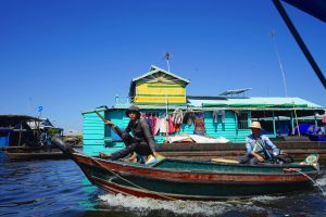 Our first stop is the floating village of Kompong Luong. The village has over 10,000 inhabitants, the largest on the Tonle Sap Lake. The lake is the largest freshwater lake in Southeast Asia, filling the “center” of Cambodia. The lake, greatly influenced by the Mekong river is important today, but also in the large Angkor Civilization. It was designated as a UNESCO biosphere reserve in 1997.
