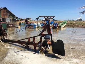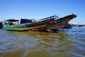 The freshwater lake is inundated by the Mekong annual water fluctuations. The lake size over the course of a year varies from about 1,000 square miles to over 6,000 square miles! It connects to the Mekong River via the Tonle Sap River, which actually has a unique flow reversal due to the Mekong fluctuations and annual monsoons.