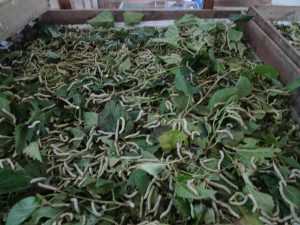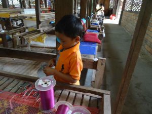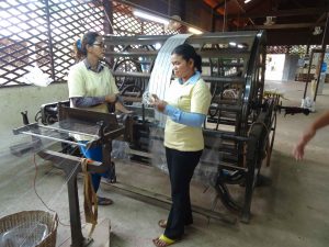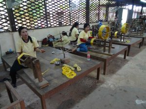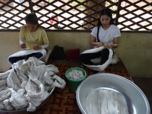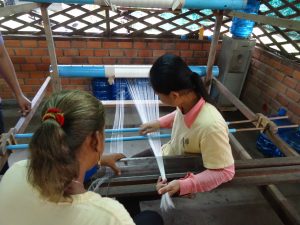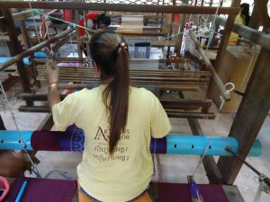 It is about twenty minutes outside of Siem Reap. I enjoy understanding and seeing such manufacturing processes. It is an amazing process that we see from start to finish from the feeding of the worms with mulberry leaves to the looms and the weaving process. The handmade process looks like a hard one for the 400 plus workers in the operations. Workers can begin at age eighteen and many received months of training.