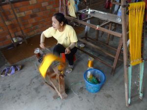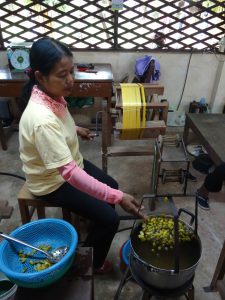 Next we stop at the Angkor Silk Farm in the Puok District. I thought “just another silk farm”. However, surprisingly, it was quite impressive. The business is a result of Artisans Angkor, a project aimed at rebuilding the country after war by training young people in traditional cultural trades. It focuses on providing the skills to underprivileged Cambodians with little education. It all began with support from the French government and the EU, it is now self sustaining.