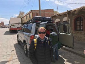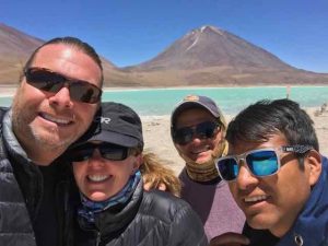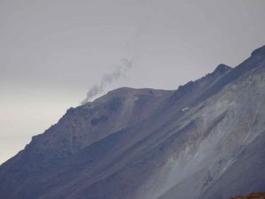 We end the days trekking by driving across the flat to the base of Tahua volcano. The volcano peak is over 6000 meters! Our guide Janet has made the trek up the volcano, but we will not today!
