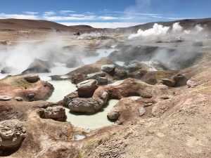 Our next stop is too see the amazing geysers of Sol de Mañana. These are very active and colorful due to the various mineral content.